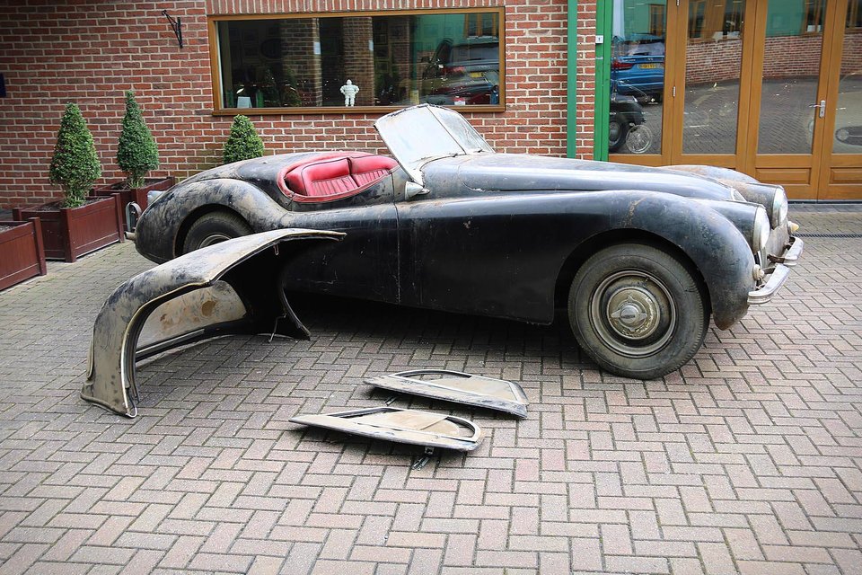This one’s ripe and ready for restoration. Kept in dry storage since the 1970s, this beaten-down Jaguar XK120 from Woodham-Mortimer is practically begging for some thorough cleanup. And if you’re even just a tiny bit interested in restoration jobs, you already know just by looking that this is going to be a fixer upper of a car.