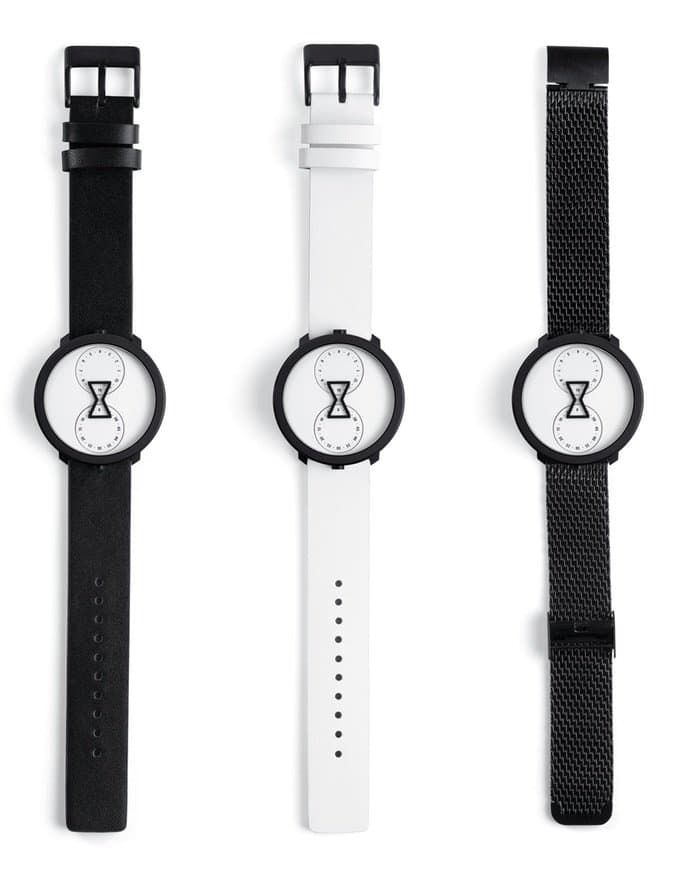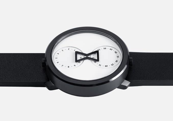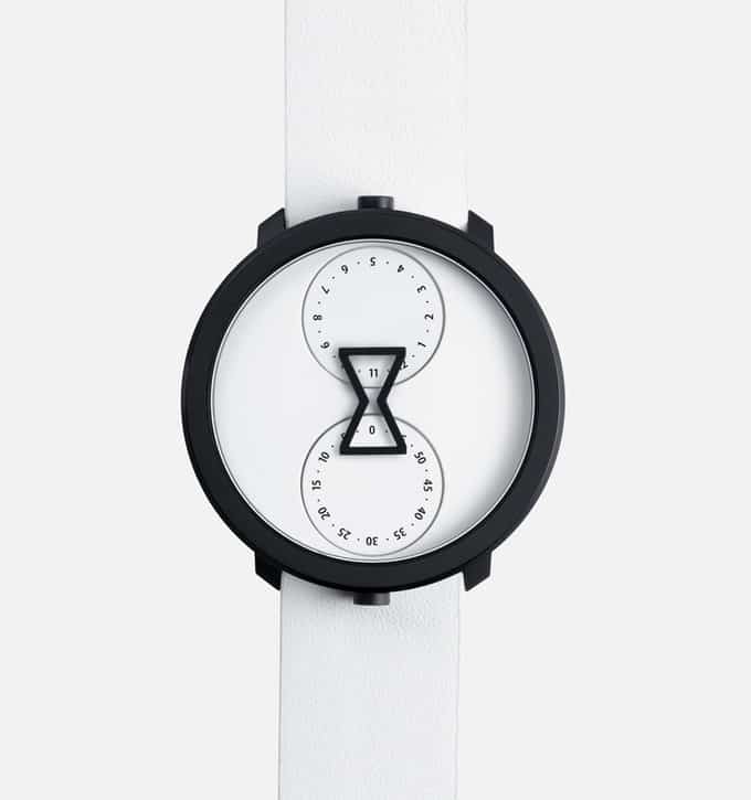Designed by New York-based studio Anton & Irene, the NU:RO is a minimalist analog watch with two dials shaped like a time capsule. Located inside the circular watch face are two separate circles indicating the hour (up top) and the minute (below). In the middle is the hourglass, with its two ends overlapping slightly into each circle. When the circles rotate, the current time is framed by the silhouette of the dial. It sounds very complicated written this way. That said, one look at the NU:RO Watch and you’ll get it instantly.