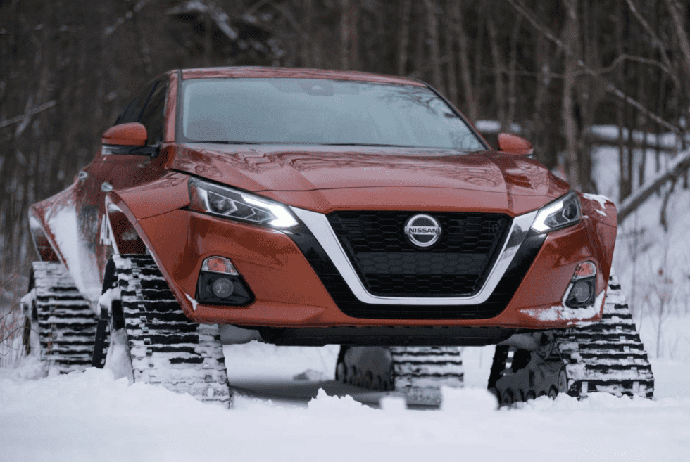 Once in a while, it’s nice to see something out-of-this-world outside of movies, books, or comics. Well, if you’re one of us who’s hoping to actually see one in real life, then the Nissan Altima-te AWD just might that thing. Here you have an imposing machine that’s ready to tackle whatever colder climates throw at it. We understand that when it snows, overall driving conditions become a little difficult. That’s why snow tires are crucial if you want to get anywhere safely. On the other hand, this unique vehicle takes it one level higher with caterpillar treads.