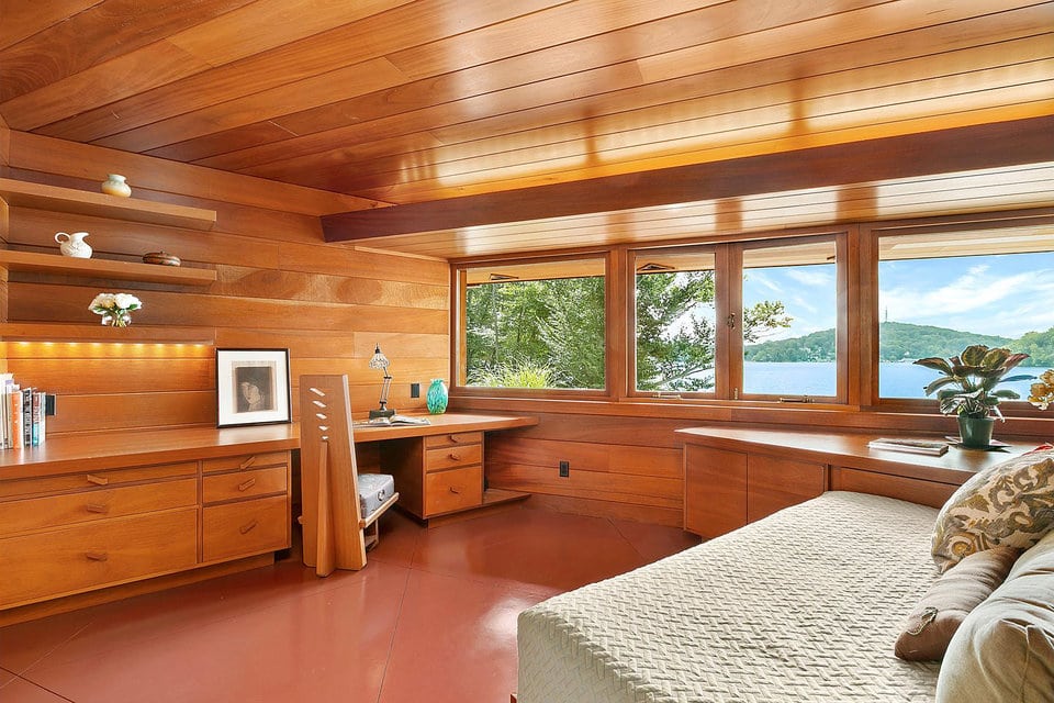 On the edge of the ten-acre, heart-shaped Petre Island sits two houses made by none other than Frank Lloyd Wright. The first one, a guest cottage, was built in 1950 and has three bedrooms and a single bathroom. The other, a main house, was finished in 2007 and has four bedrooms.