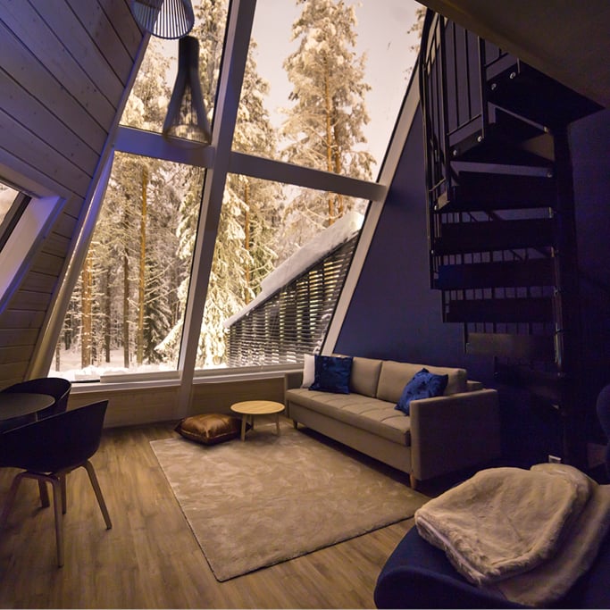 The winter resort, open just this month in Santa Claus Village, is the most luxurious take on the genre yet. Here, there are standalone Scandinavian-style apartments affixed with modern architecture and furnishings. For each cabin, there’s a living area, a modest-sized kitchen, and an upstairs bedroom. Topping it all off are floor-to-ceiling windows for your full view of the snowy landscape and the Northern Lights.