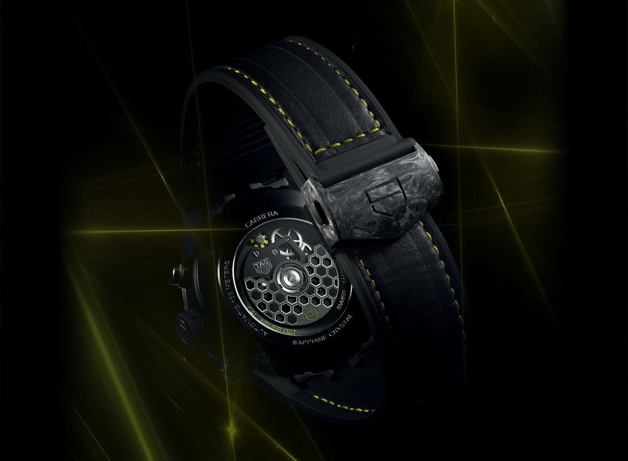 Other than its one-of-a-kind carbon composite hairspring, the luxury wristwatch is a stunning item. To showcase the futuristic technology inside each TAG Heuer Carrera HEUER 02T Tourbillon Nanograph, a special design adorns its body. You can spot a hexagonal pattern on its dial as well as on the oscillating weight. The latter is viewable through the watch’s sapphire case back. Finally, the lime accents add some cool contrast to its dark finish.