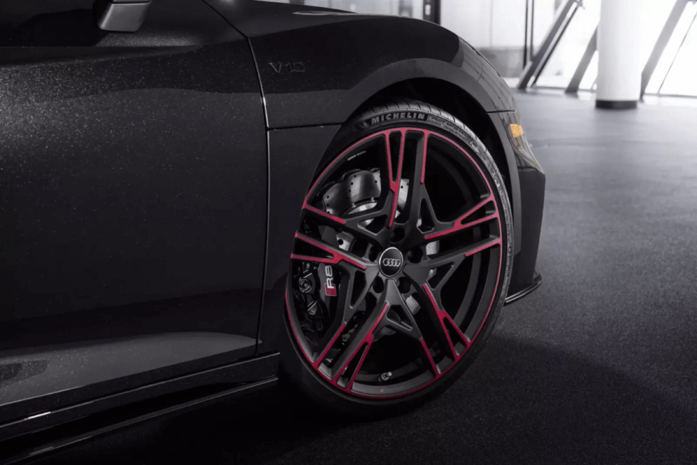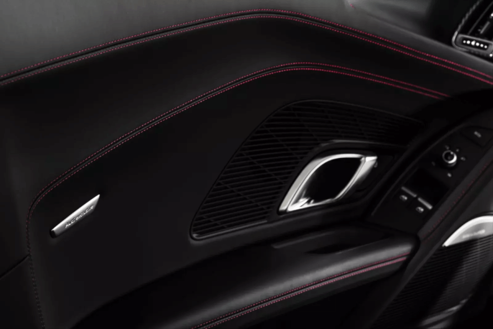 Meanwhile, the 20-inch double-spoke wheels are in matte black with red accents on the edges. The theme continues inside as it features predominantly black leather upholstery, while the ones on the carbon fiber seats and the stitching are in red. The steering wheel, on the other hand, is wrapped with black Alcantara. In-cabin entertainment comes from the Bang & Olufsen audio setup, while owners control everything via Audi’s Virtual Cockpit system.