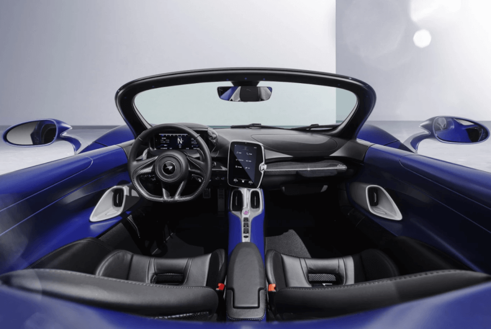 For those wondering, McLaren was equipping the original Elva with its Active Air Management System. To date, the technology remains exclusive to the company and it future fleet of open-top supercars. The two-tone coat of Casa Blue and White alongside the motorsport livery courtesy of McLaren Special Operations (MSO) makes its one exciting ride.