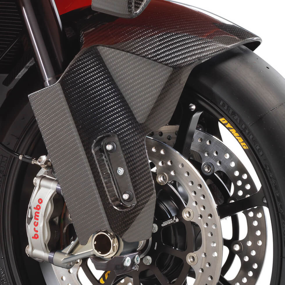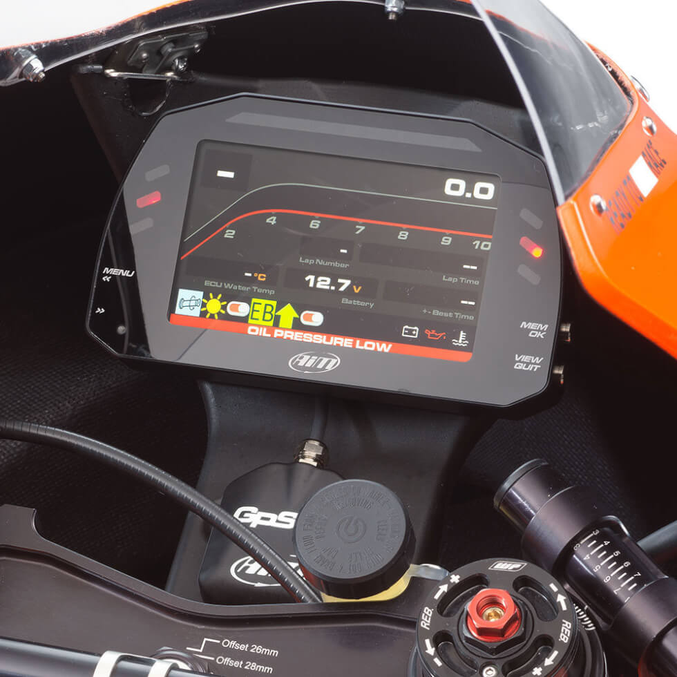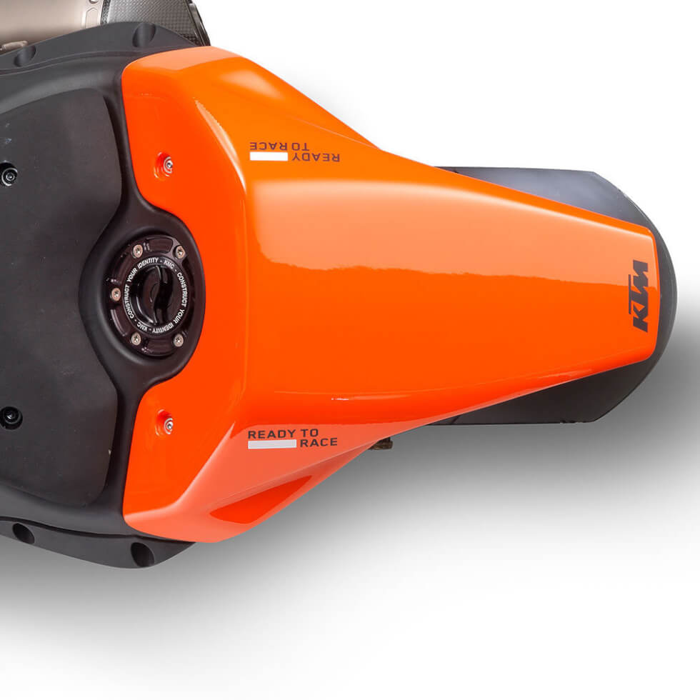 Its 889-cc LC8c engine produces 128 horsepower with 74.5 lb-ft of torque and is paired to a 6-speed transmission. For superior cooling, the carbon fiber front fender features an air scoop that channels air to the radiator. In short, KTM equips the 2022 RC 8C with everything it needs to tackle the tracks.