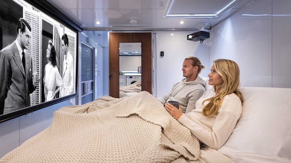 Likewise, inside you will find all the necessities to make off-grid living a breeze. Forget bringing those portable camping utensils when you have enough storage space inside. It even has a solar fridge and a three-burner oven that runs on a self-contained 80-pound propane tank. Then there’s a full-height toilet and even a spa-style bathroom that features a multi-flow shower panel. Moreover, it has an airconditioning system and a three-zone heating for the bedroom, living area, and bathroom controlled via a digital wall thermostat.