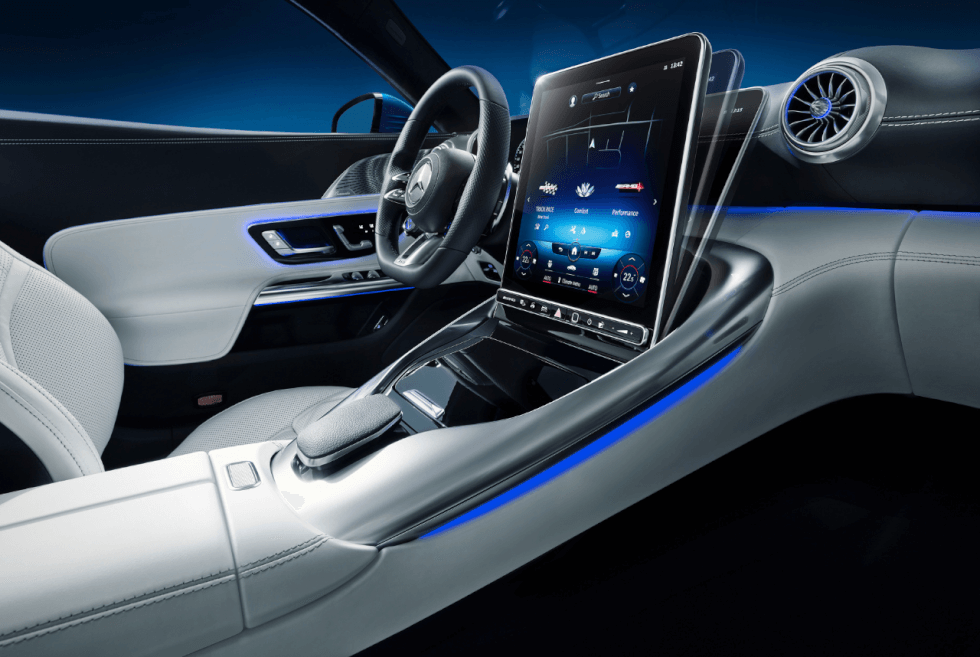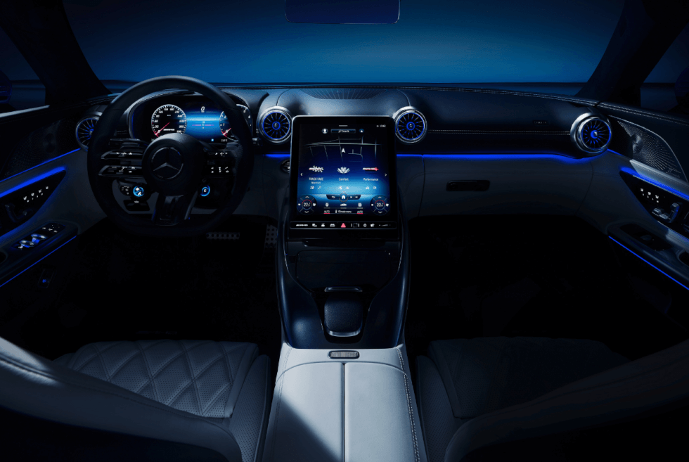 There are exciting functionalities and possible gimmicks Mercedes-Benz can implement with the MBUX Hyperscreen. However, it occupies the entire width of the dashboard. For the 2022 Mercedes-AMG SL Roadster, the designers want a balanced mix of digital and analogue.