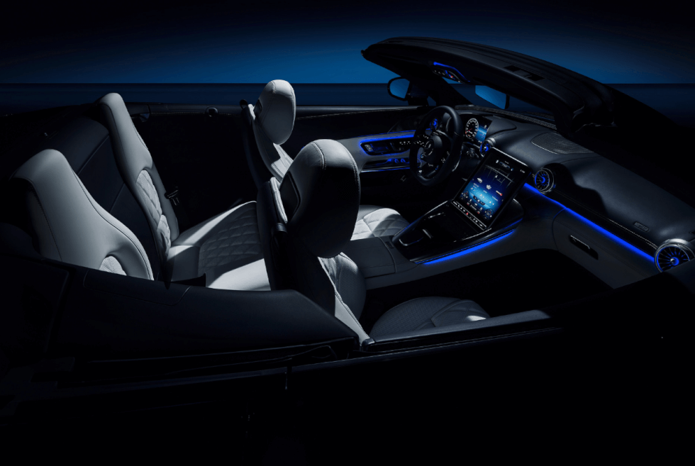 Meanwhile, the driver gets a 12.3-inch high-resolution screen with up to 64 shades of lighting. Audio playback emanates from premium Burmester metal loudspeakers with a striking grille pattern. Ergonomic seating, LED lighting, high-quality upholstery/stitching, and cutting-edge all blend into something cohesive. The Hyperanalogue design might just be the 2022 Mercedes-AMG SL Roadster’s best feature yet.