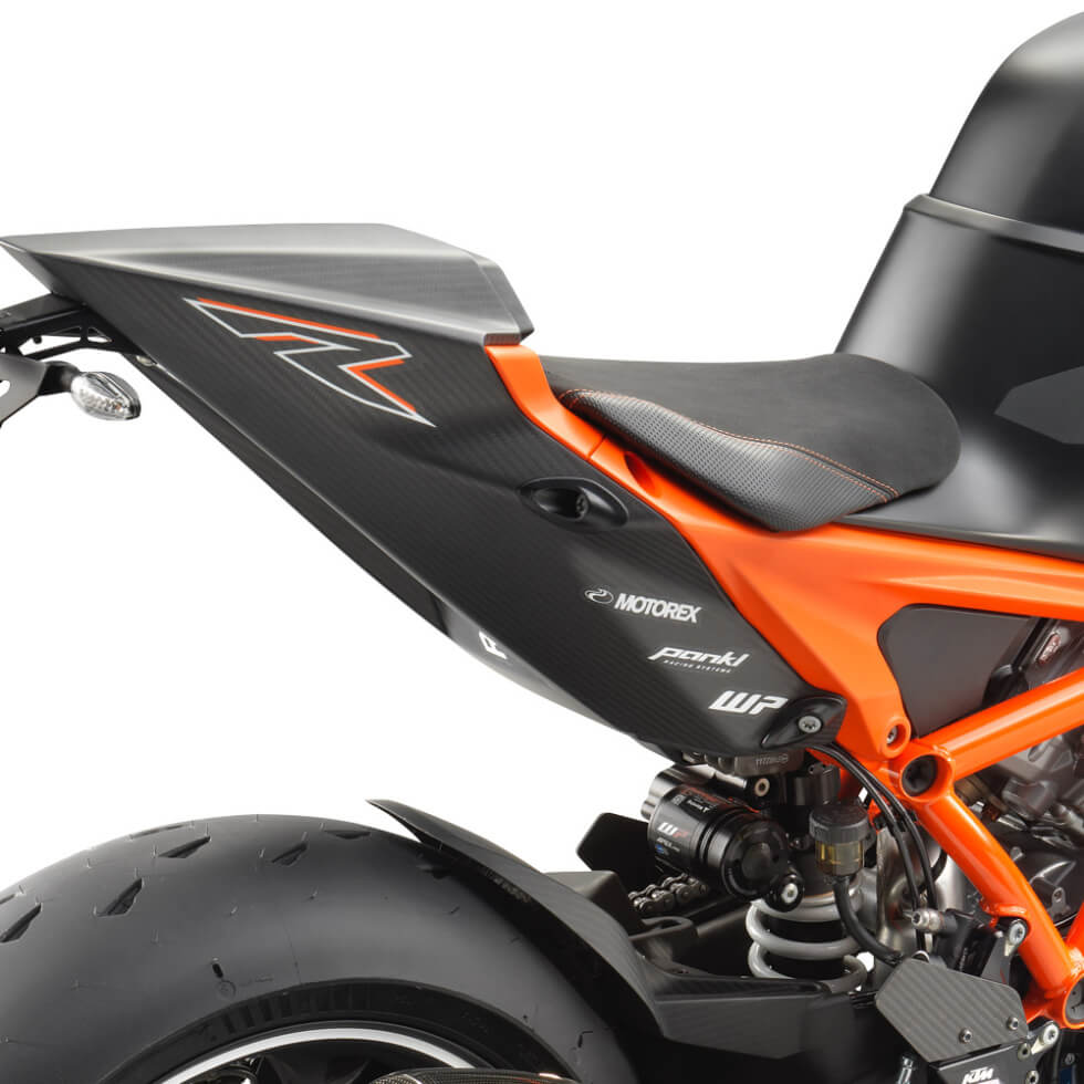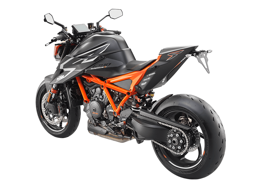 Two-wheelers of its type ditch everything they can, without sacrificing handling and performance, thereby ensuring optimal weight management. Nonetheless, KTM takes great care to maintain the aggressive stature of the bike. Hence, the remaining bodywork and exposed frame endow the 2023 1290 SUPER DUKE RR with a muscular profile.