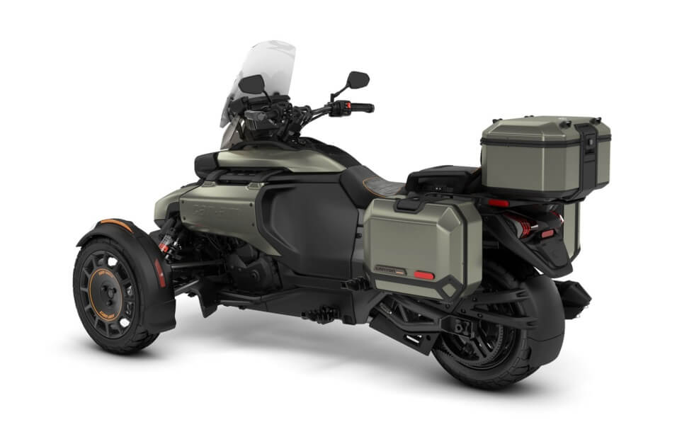 “On the high-end 3-wheel Canyon Redrock you’re surrounded by comfort, with 2-up plush seating, Smart-Shox semi-active suspension, advanced tech like back-up camera, and unique colors and trims to make your ride your own,” writes the manufacturer. Can-Am likewise offers optional aftermarket accessories to kit it out ahead of your next adventure.
