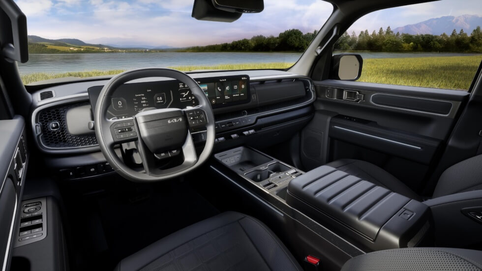 “The specially designed X-TREK mode enables stable, constant driving through low-speed cruising, allowing off-road enthusiasts to easily break through rough and demanding terrains,” writes Kia. Then there is the Ground View Monitor. It offers real-time views of what’s in front of the 2025 Tasman X-Pro and its surroundings.