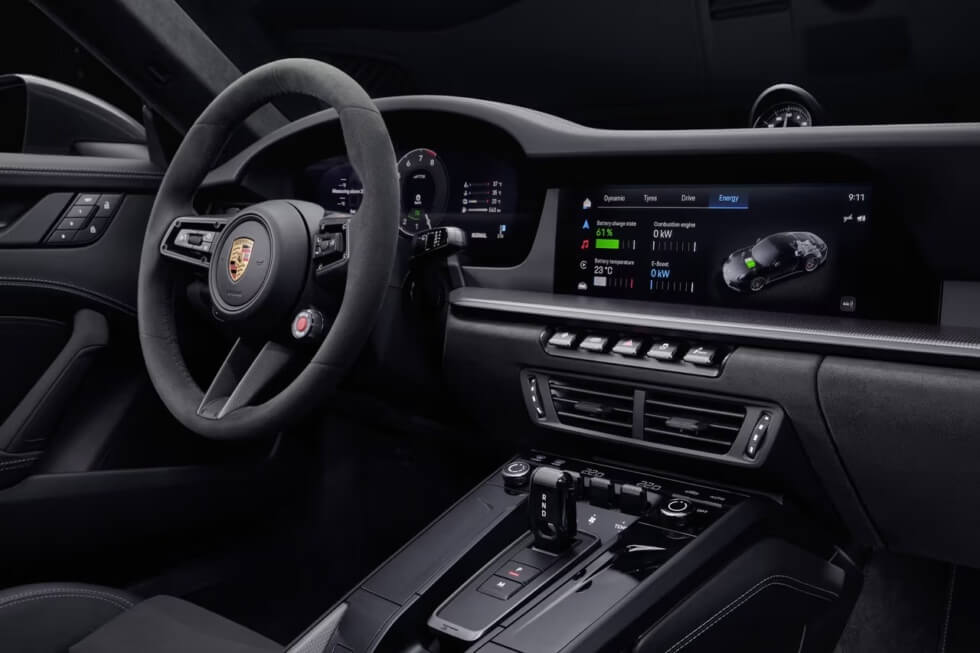 Overall, we’re looking at an output of 532 horsepower with 449 lb-ft of torque for a 0-60 mph time of 2.9 seconds and a top speed of 194 mph. As for the cockpit, whoever is behind the wheel faces a 12.65″ curved digital instrument cluster. Upholstered and adorned with premium materials, Porsche crafted the 911 GTS T-Hybrid as an elegant sports car.