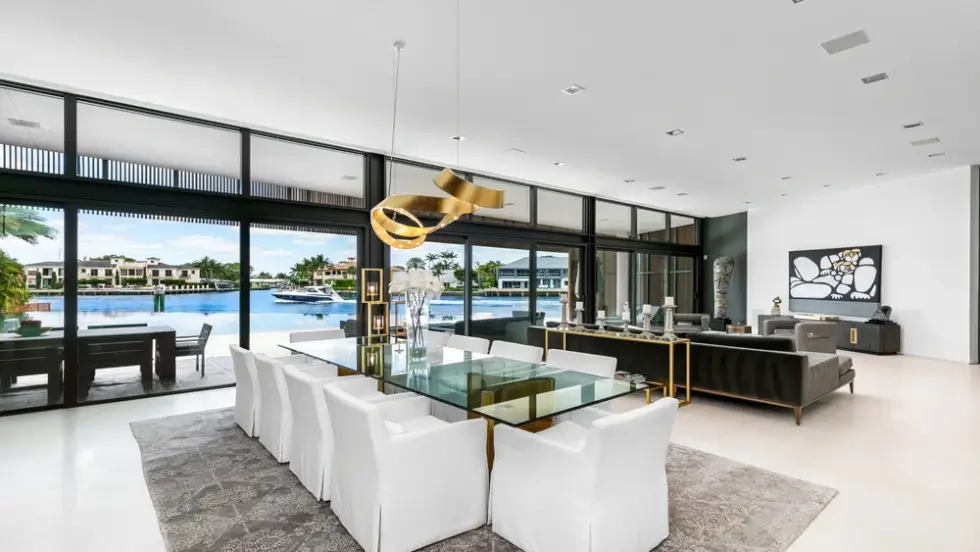This one-of-a-kind architectural custom-built masterpiece boasts 6,215-square-foot of interior space. It sits on 0.401 acres of land and has an impressive 112 feet of waterfront. It hosts five bedrooms and four and a half bathrooms and spares no expense even upon entry.