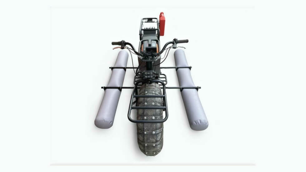 Furthermore, metal grouser plates are bolted over for even more traction. The manufacturer states the volume also allows it to float on water. However, you’ll need to attach two inflatable pontoons on each side for stability. Bafang hub motors that draw power from a 48V, 35Ah battery can get you up to 30 mph.