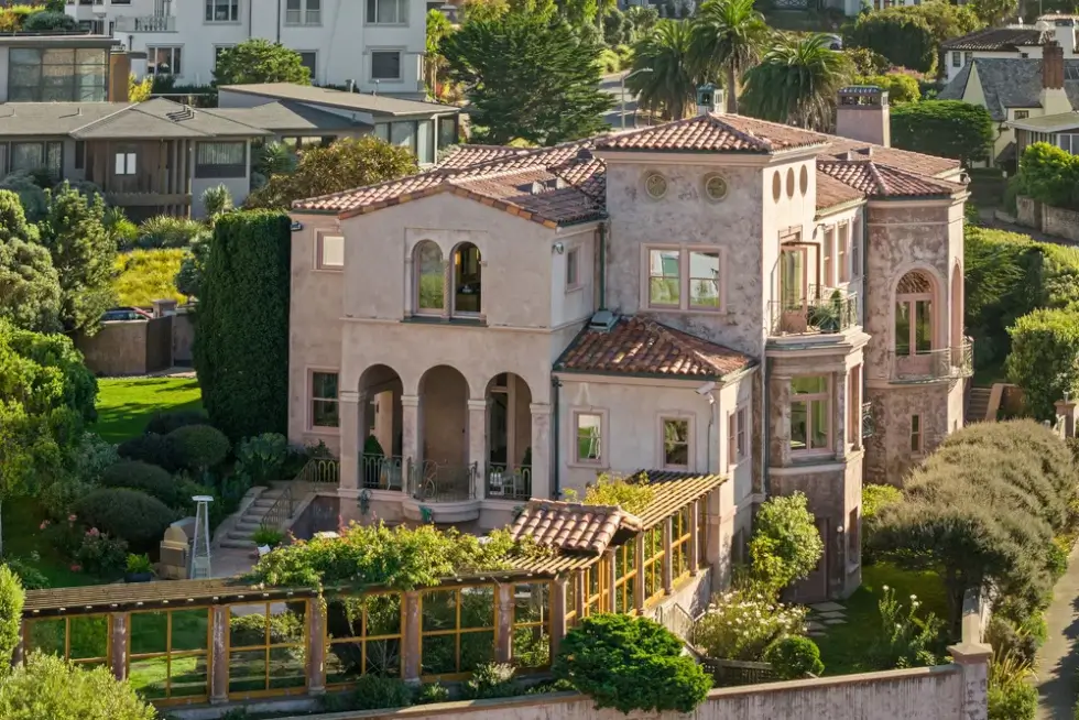 Nestled in San Francisco’s exclusive Sea Cliff neighborhood, the property sits on a sprawling 17,149-square-foot corner lot at 540 El Camino Del Mar. It boasts expansive views that stretch from the Pacific Ocean to the San Francisco Bay, Golden Gate Bridge, and Marin Headlands. It has the grandeur scale and volume of a 1926 Italian Renaissance Villa that hosts some 20 rooms on three floors measuring 10,598 square feet per draftsperson.