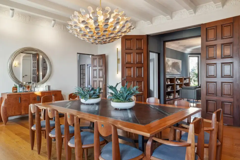 But they preserved the rare and valuable building materials used in 1926 that are no longer available in the construction of modern homes. These include the period details inside such as the ornate moldings, exposed beams, wide plank hardwood flooring, and built-in cabinetry. Paying homage to the original construction, the house also has carved archways, wrought iron, marble columns, and patterned terra cotta tiles.
