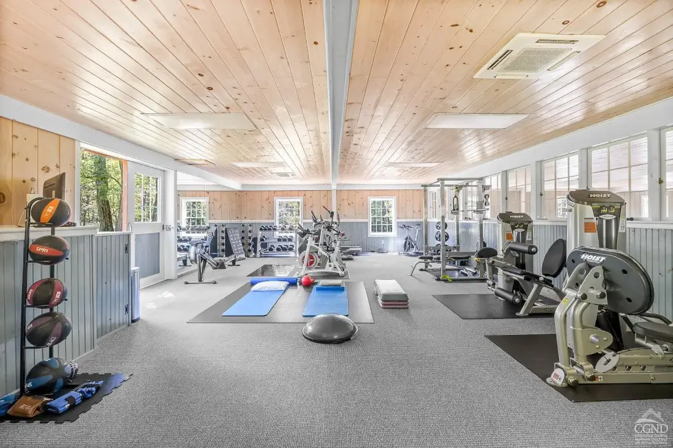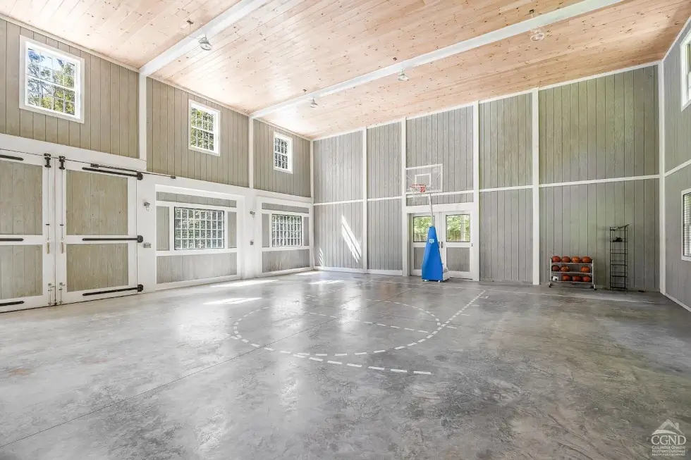 570 Pumpkin Lane also includes a sports barn. This building features a gym at the upper level and a basketball court at the ground level. Owners can convert it into a pickle-ball court if a game of hoops is not to their liking. Another barn is available for storage or whatever the buyers want it to be.