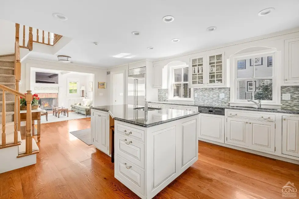 Despite the age, renovations ensure it meets modern standards. The dwelling stands on an 85.83-acre lot and spans approximately 4,208 square feet. 570 Pumpkin Lane comes with six bedrooms and five bathrooms alongside a kitchen full of premium appliances. The latter is ideal for whipping up culinary treats for everyone.