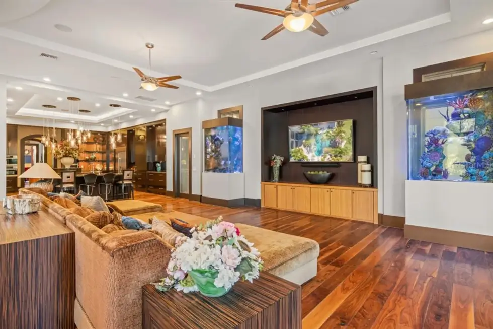 The grounds can even be mistaken for a theme park with its massive, resort-style saltwater pool with a spa, slide, grotto, and a swim-up hibachi grill and bar. There’s also a tennis court and a zip line! You have practically no reason to leave this place albeit for dining out. All these luxuries are the reason why the couple is selling their property for a whopping $30 million.