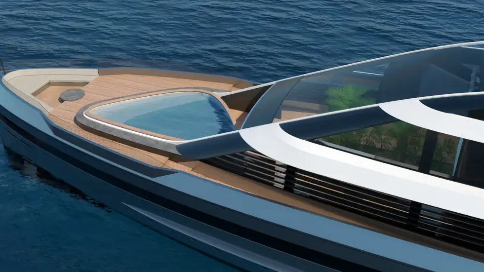 This 200-foot vessel is hardly the first to hit the waters with an uneven theme throughout its blueprint. However, Francesco Struglia Design presents a concept that only reveals its namesake from certain angles. Even when you spot the odd outline of the superstructure, it’s not jarring enough to take away from its striking profile.