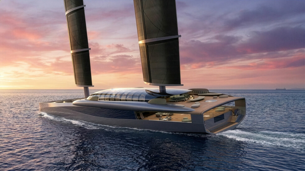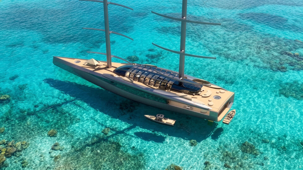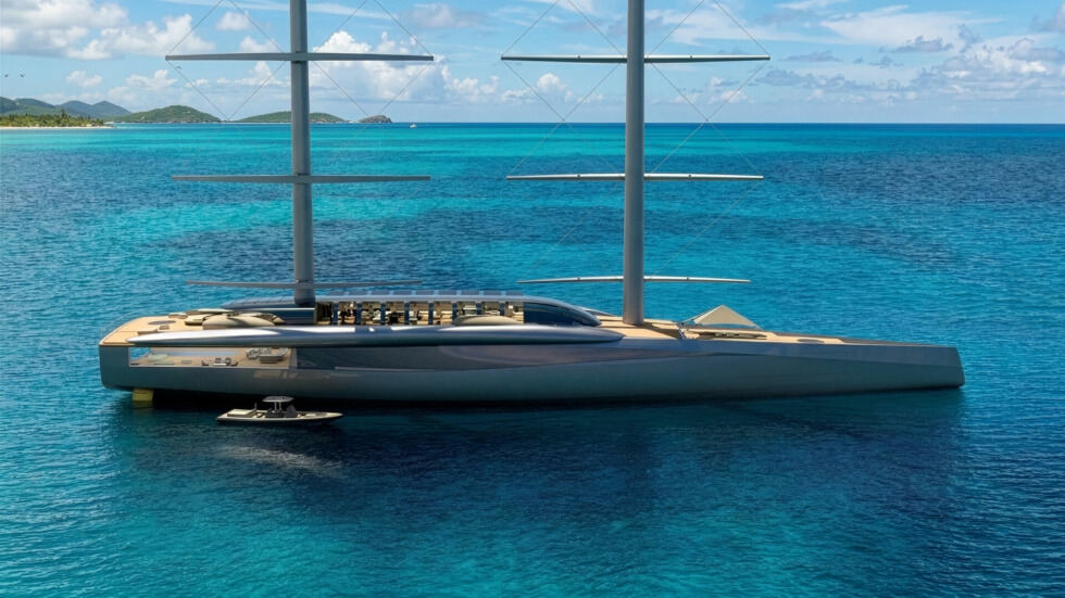 Since current propulsion systems are still far from completely green, shipbuilders have no choice but to explore other options. It seems that among the available eco-friendly alternatives, the most practical are sails. The A100 is a concept megayacht with two towering masts and generous volumes for owners to customize accordingly.