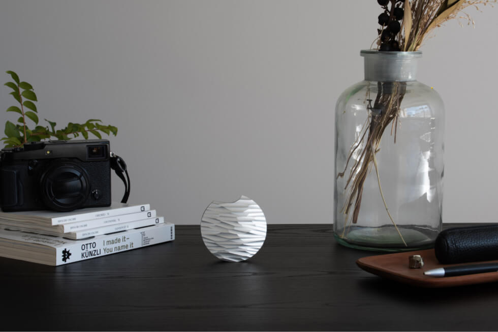 The outcome is an exquisite piece of disc-shaped metal with a shiny anodized aluminum alloy finish for a touch of elegance. AATISMO transformed a utility tool into a piece of art deserving a spot on your desk. Unlike traditional box cutters with their typical utilitarian aesthetics, pointy blades, and knife-like appearance that normally end up in the drawers after use.