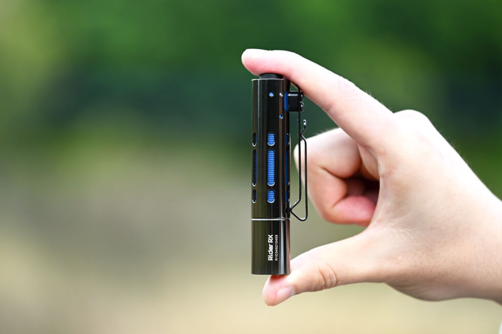 Moreover, an aerospace-grade aluminum-alloy body and a stainless-steel outer shell ensure the Acebeam RiderRX stays durable no matter the adventure. It can withstand a drop of up to one meter and is submersible in water up to two meters. A double-layer design barrel also ensures it stays cool to the touch during use. Its stainless steel wire drawing process shell and hollow hole design not only can effectively isolate the heat released by 650 lumens, but also reveal the mysterious blue inner tube, which may be a good gift for business.