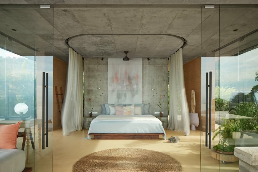 There are currently two boutique villas open for rent and each offers ocean views directly from the bed or the adjoining terrace. Each villa also has a plunge infinity pool on the side that faces out to the ocean. Even the bathrooms come with glazed walls that overlook the lush topography.