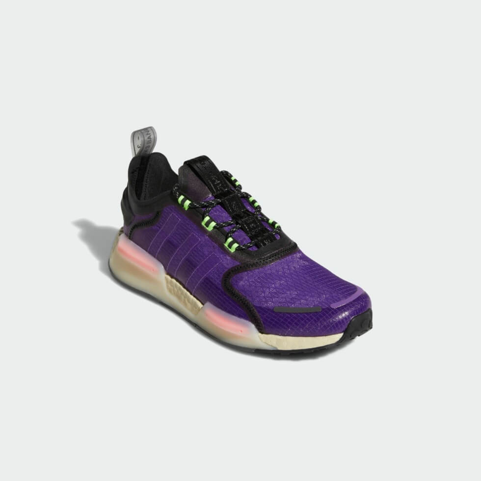 Meanwhile, the Adidas Active Purple/Core Black/Signal Green colorway of the NMD_V3 series goes royal with its striking matte purple upper, black interior, and green/black laces. A translucent rubber sheet wraps around the cream-colored midsole, making the upper stand out even more.