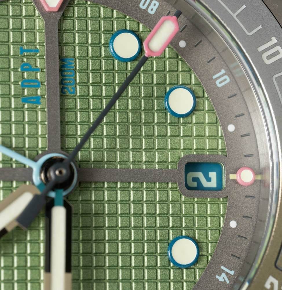 Along with the round hour markers, spines of the hours/minutes hands, and tips of the UTC/seconds hands, these are filled with lume for low-light visibility. A date aperture is located at 6 o’clock, while the ADPT signature sits close to 3 o’clock. At the heart of every ADPT Series 1 Dual-Time is a Japan-made SII NH34 self-winding caliber.