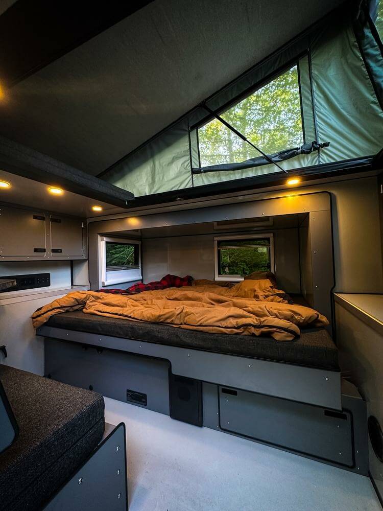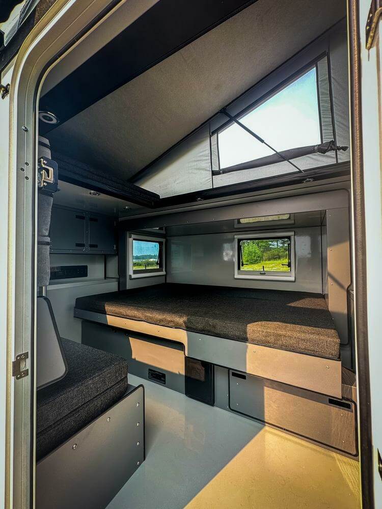 To maintain a sleek and slim physical footprint during transport, it relies on a pop-top and slide-out sections to expand its interior volume. Meanwhile, the EPIK Scout is also equipped with a comprehensive off-grid power system, providing on-demand sustainability wherever you go. Lastly, Adventure Series RV engineers this bad boy with plenty of storage.