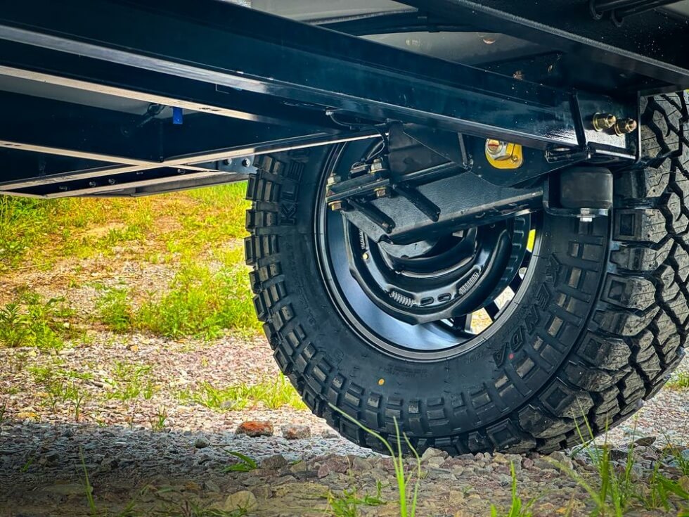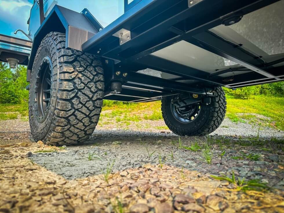 The goodies don’t stop there as this camper trailer benefits from a Timbren 5200 off-road suspension system. Its wheels are then shod in beefy 33″ all-terrain tires, while electric trailer brakes provide reliable stopping power. Then there is the ARK articulating hitch compatible with most mid-size SUVs and pickup trucks.