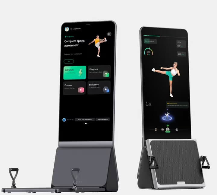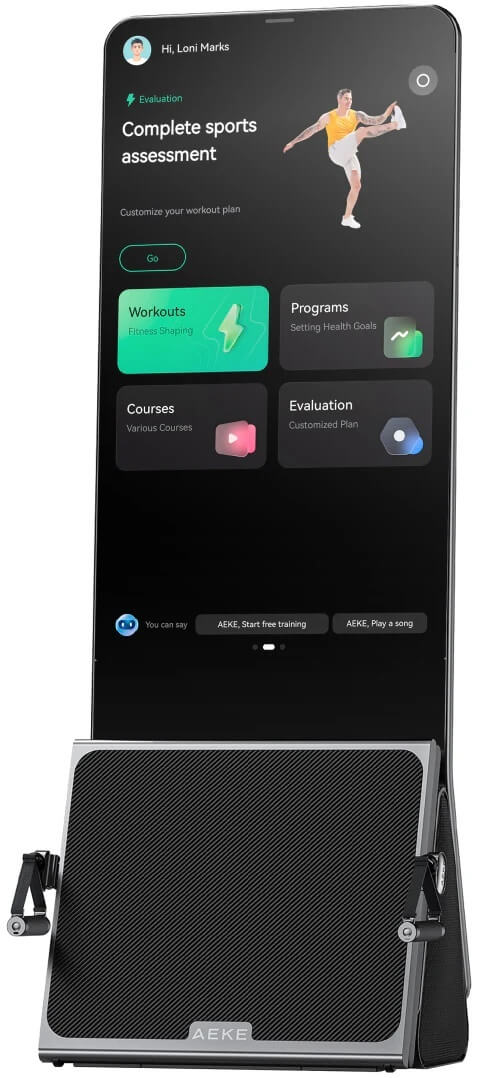 However, AEKE takes it beyond just motion tracking as the system adjusts resistance and issues reminders about motion, form, or posture. It touts a 43” 4K touch screen, an AI camera, and a 2.1 surround sound output.