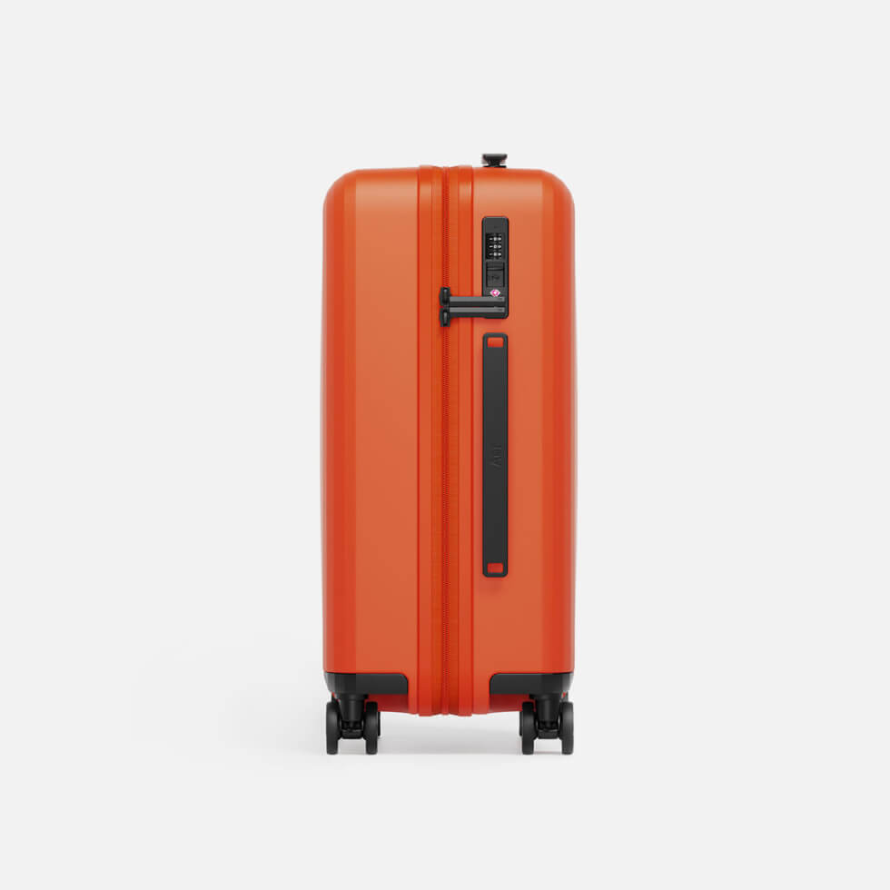 The Aer Carry-On sets itself apart from its kind with a wheel brake system integrated into Hinomoto Miraclent wheels. The ball bearing wheels themselves ensure an ultra smooth and silent ride so you can breeze through the airport or anywhere else with ease and comfort.
