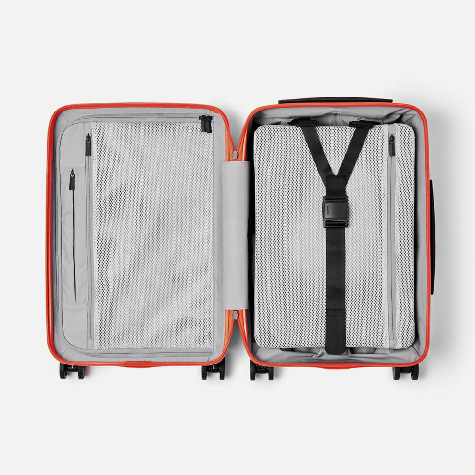 The Aer Carry-On comes with top and side handles with integrated attachment points and a TSA-approved combination lock to keep your things safe and secure. It also includes a premium leather luggage tag and is available in 48L (weighs 3.8 kg) and 41L volume (3.7 kg) options. Both sizes can fit in overhead bins and available in five colorways: Safety Orange, Black, Pale Mauve, Dark Olive, and Fog White.