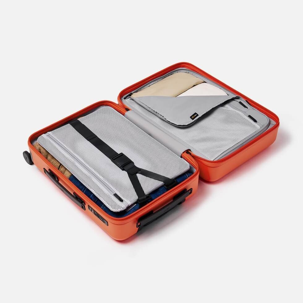 It boasts an ultra-durable Makrolon polycarbonate hard shell exterior complemented with a puncture-resistant, gapless slider-designed double-layered YKK RCW zipper, which is known to be three times stronger than other luggage zippers. The shell also houses a sustainable CORDURA re/cor recycled nylon ripstop liner and smart interior organization featuring a quick-action compression system with magnetic Fidlock fastener.
