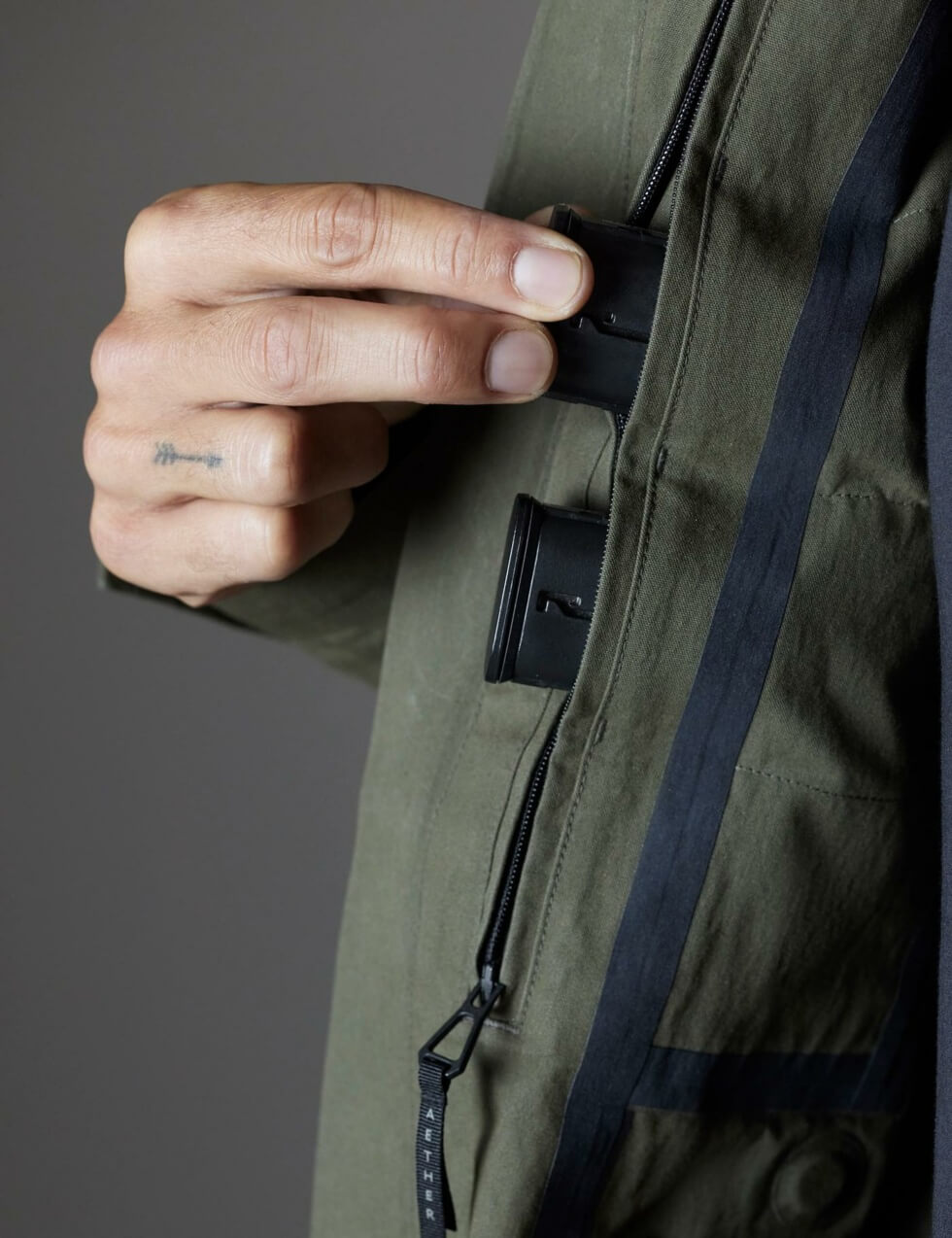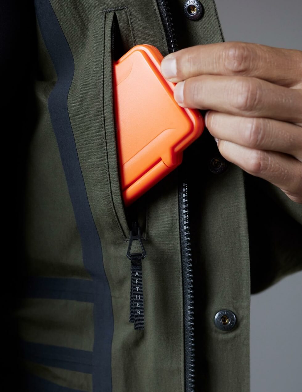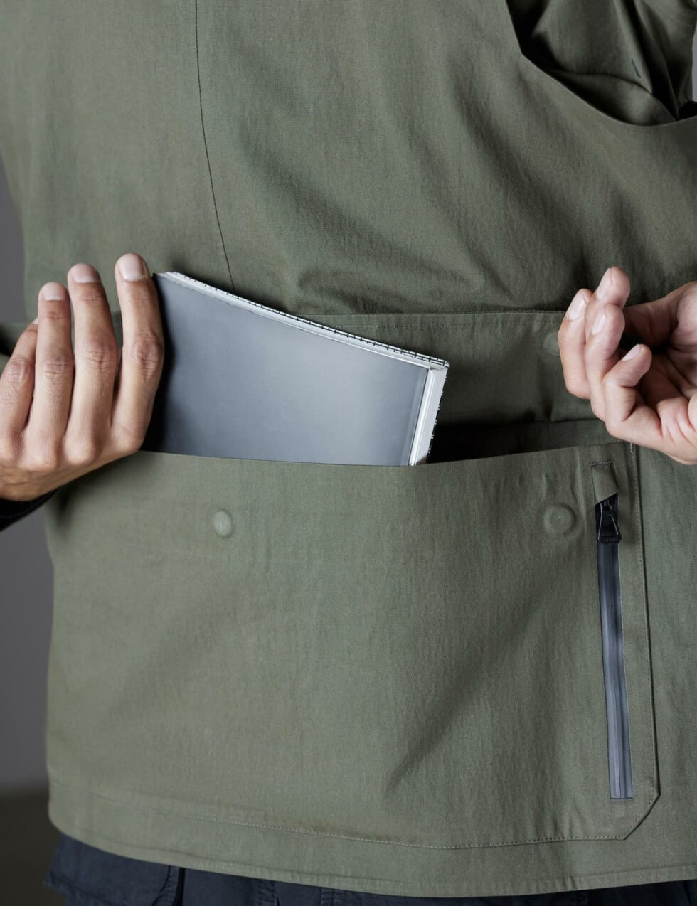 Moreover, the Aether + Leica Reporter Jacket provides a windproof barrier in colder conditions. It uses an innovative fabric that makes it 100% impervious to wind so it effortlessly resists harsh, whipping winds.
