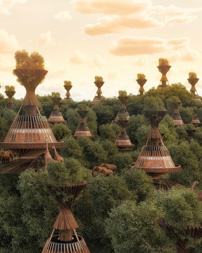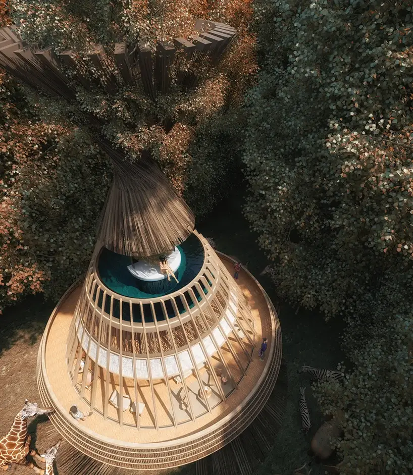 Moreover, each lodge has staircase access to different floor levels and has its private pump for the collected water. It has a bedroom, a bathroom with an enclosed toilet, a shower, and a sink. There are storage spaces and a small snack bar. Aside from serving as a tourist lodge, MASK Architects also envisions the BAOBAB Safari Lodges in BAOBAB Luxury Safari Resort for various uses. These include housing, bars, spas, restaurants, lounges, offices, fitness centers, educational centers, and more.