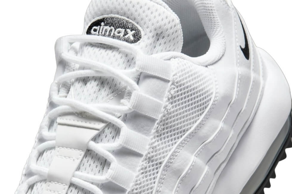 Although the sneakers would still look fashionable as an urban daily driver, their true purpose lies elsewhere. Just as Nike names it, the Air Max 95 Golf “White/Light Graphite” is primarily designed for performance at the links. Furthermore, it’s the footwear to slip on when you also care about comfort.