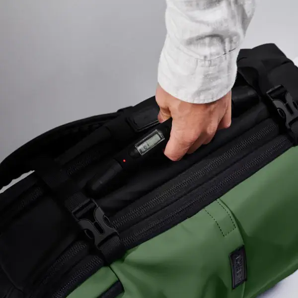 Buyers can add the official rechargeable compact air pump which comes with multiple nozzles. It is compatible with most vacuum-sealable bags and systems. Another cool optional add-on is the weight handle. Just pick up the Airback Travel Bag and the integrated display shows how heavy your luggage is.