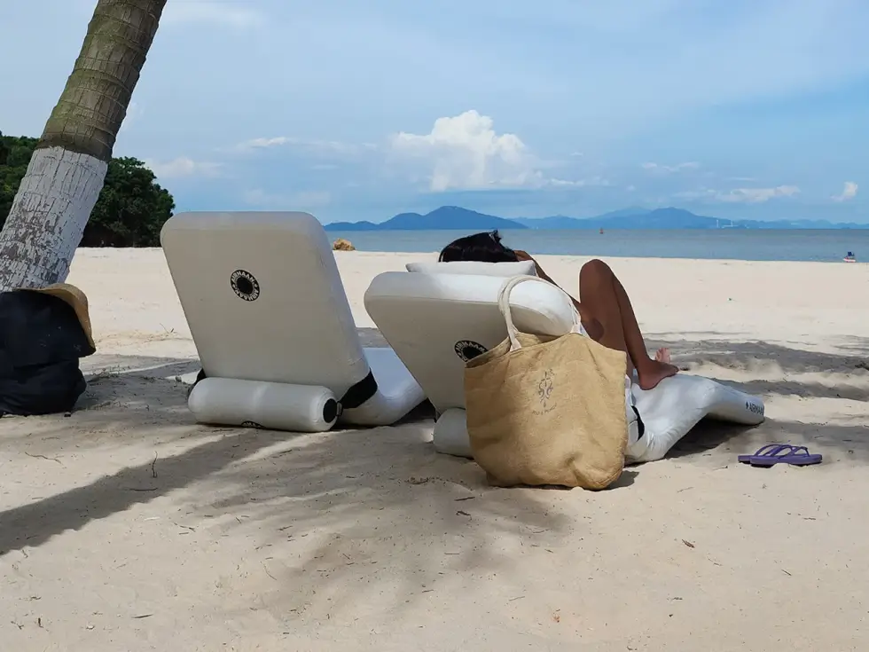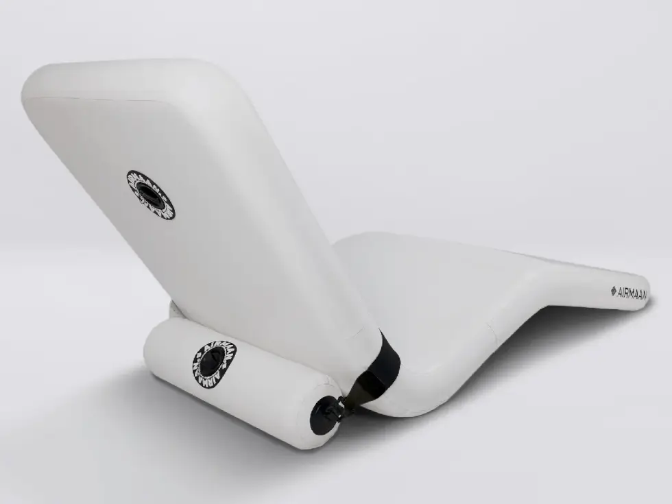 Airmaan’s Z LOUNGER holds a sturdy shape once inflated. Its ergonomic design offers ultimate comfort from the adjustable firmness to the reclining backrest that’s adjustable from 90° to 180°. Moreover, it has an S-shaped contour and internal air chambers that are mapped to the natural curve of the spine.