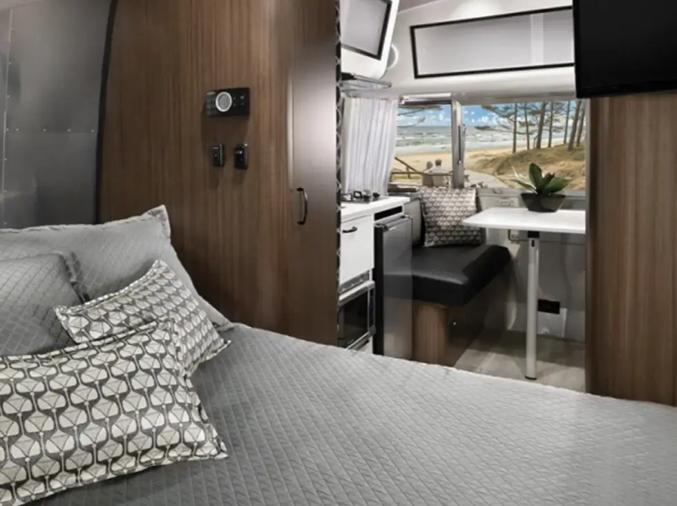 This compact trailer offers warmth and a relaxing place to stay while on the road. It boasts modern features, inside and out, with the sleek aluminum exterior inherent in the manufacturer’s other trailers the first thing that catches the eye. Inside, it offers more than enough space for sleeping, dining, and lounging. It may be Airstream’s smallest model at 16.5 feet long, but it has everything you need for serious time on the road.