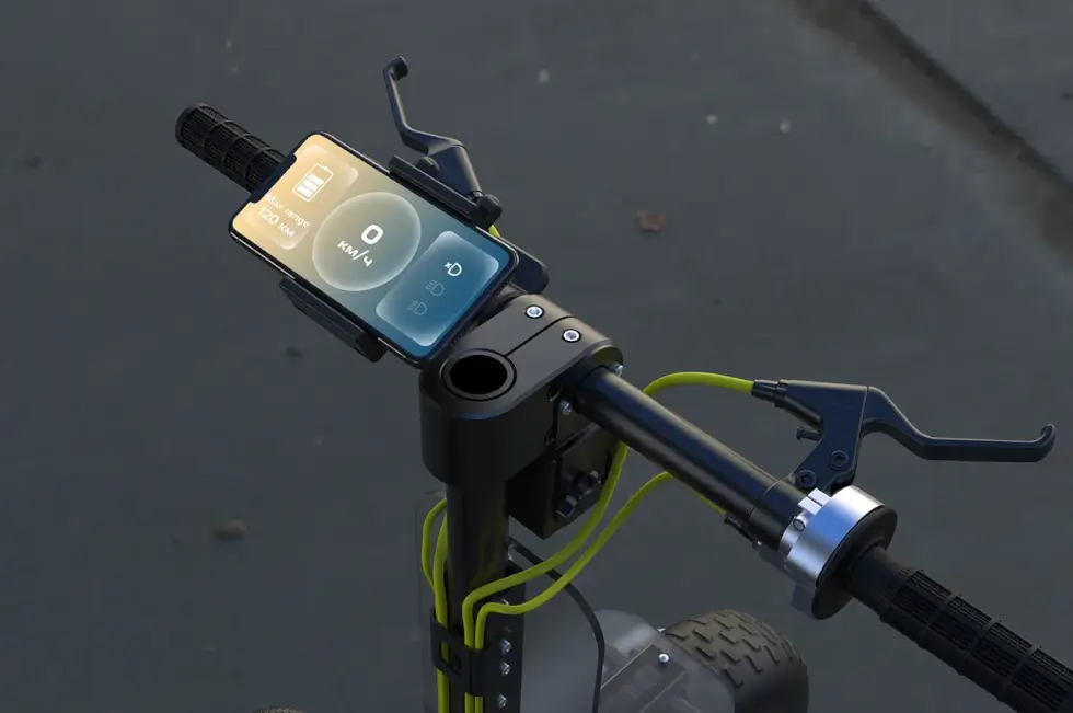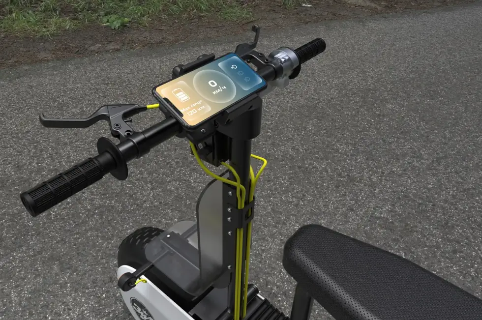 A cool aspect of its frame’s strange form factor is the cargo space. You can see that there are carabiners under the seat. People can hang grocery bags and other stuff or use the storage area down there. Meanwhile, the sections above the wheels provide more spaces to haul bigger items. Finally, a digital display on the left side of the handlebar provides telemetry data for your ZID.