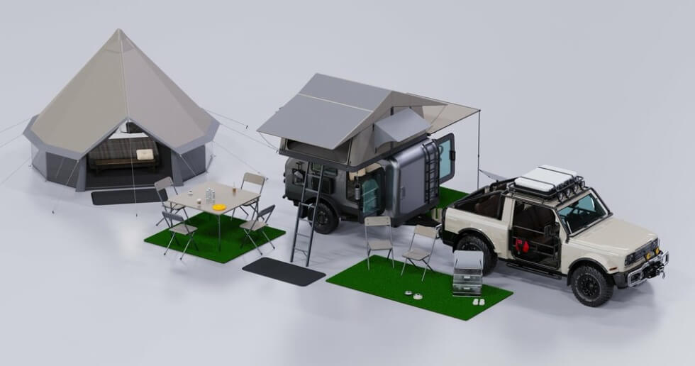 Camping is an outdoor recreational activity which allows us to experience what nature has to offer. Hence, it is only appropriate for enthusiasts to stay as eco-friendly as possible. Thankfully, the surging demand for electric vehicles prompts manufacturers to develop off-road-ready platforms. To remind everyone of the options available, we have the CAMP concept.