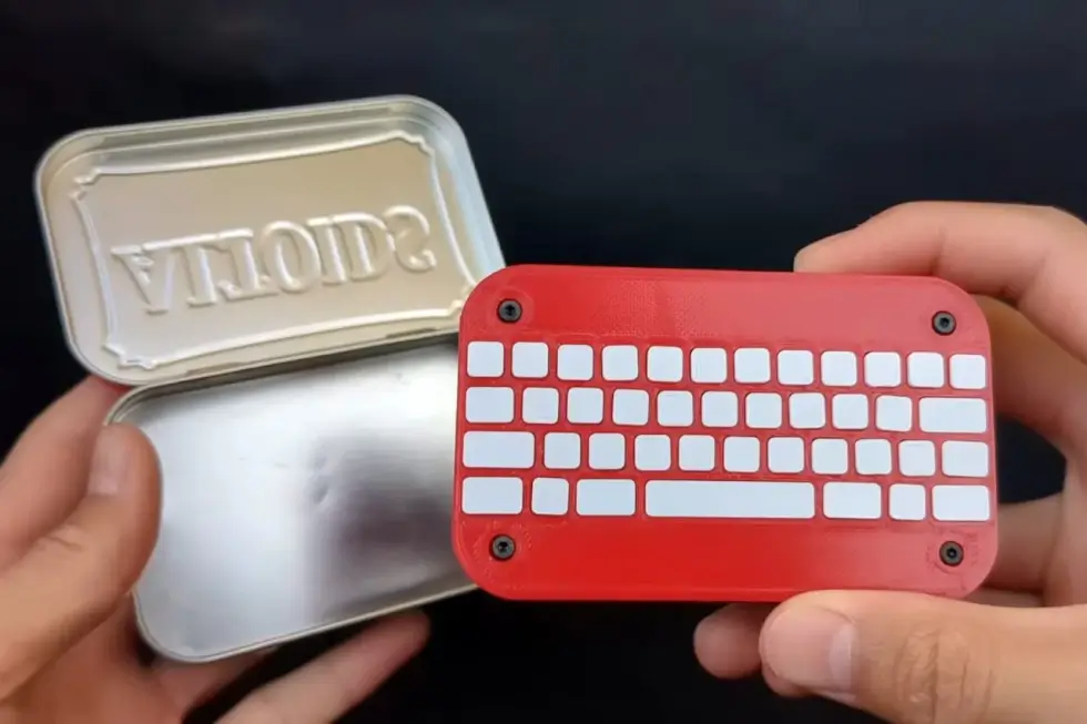 This whimsical invention is by no means groundbreaking given physical keyboard accessories are available for purchase, but it was assembled anyway. In his video titled “a curiously small keyboard,” YouTuber @flurples is shown handling what looks like your standard Altoins tin can. However, a view of the rear section just below the hinge shows a USB-C port and a toggle switch.