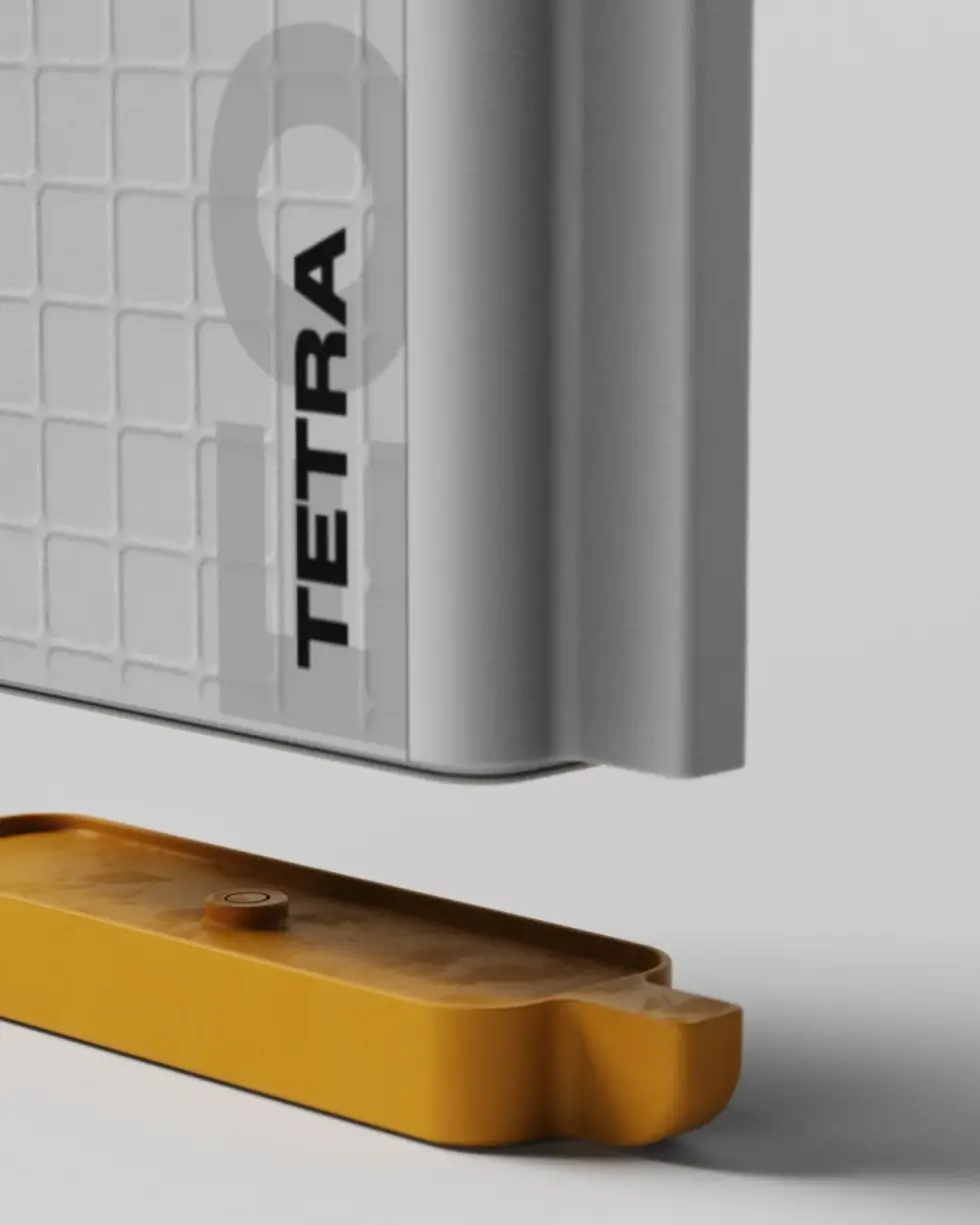 At first glance, the Tetra appears nothing more than a simple water bottle with a textured grip surface for enhanced control in slippery or wet conditions. The yellow corners also protect the bottle from bumps or accidental drops. But this is where the design gets interesting. The yellow base serves more than a decorative element.