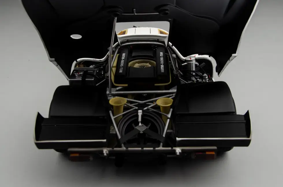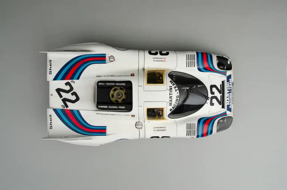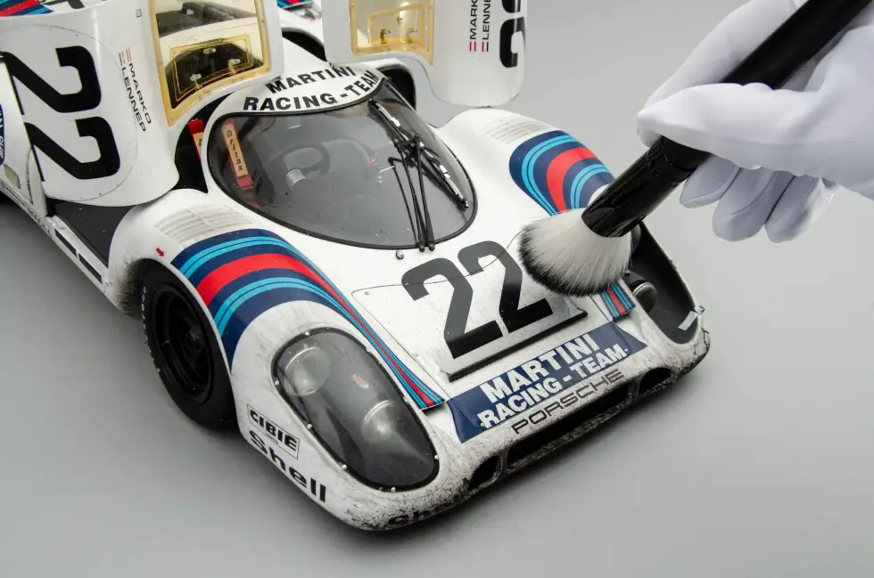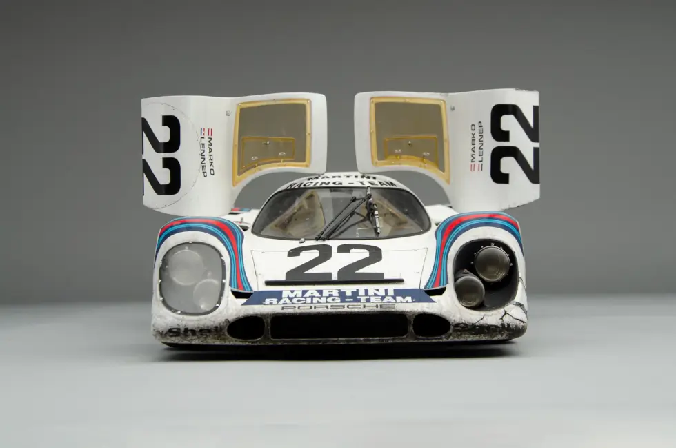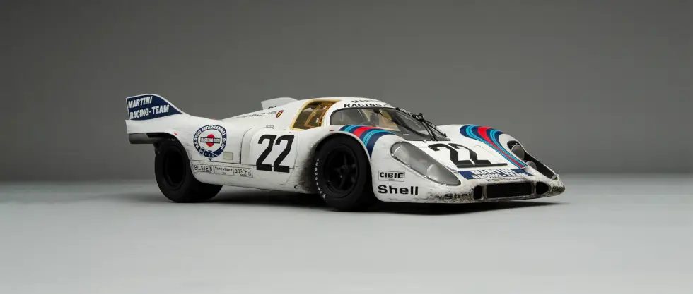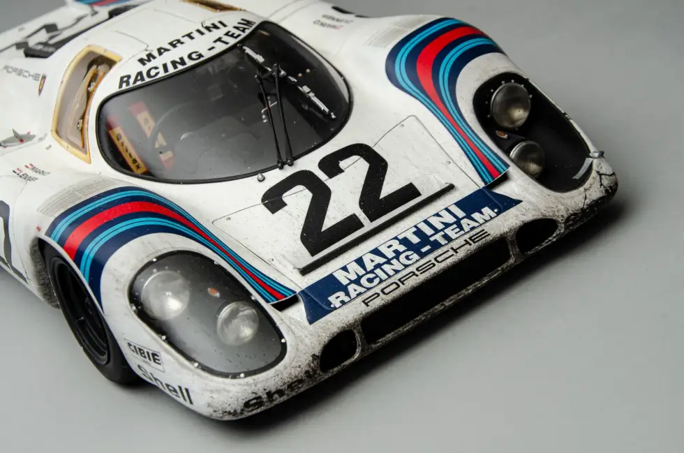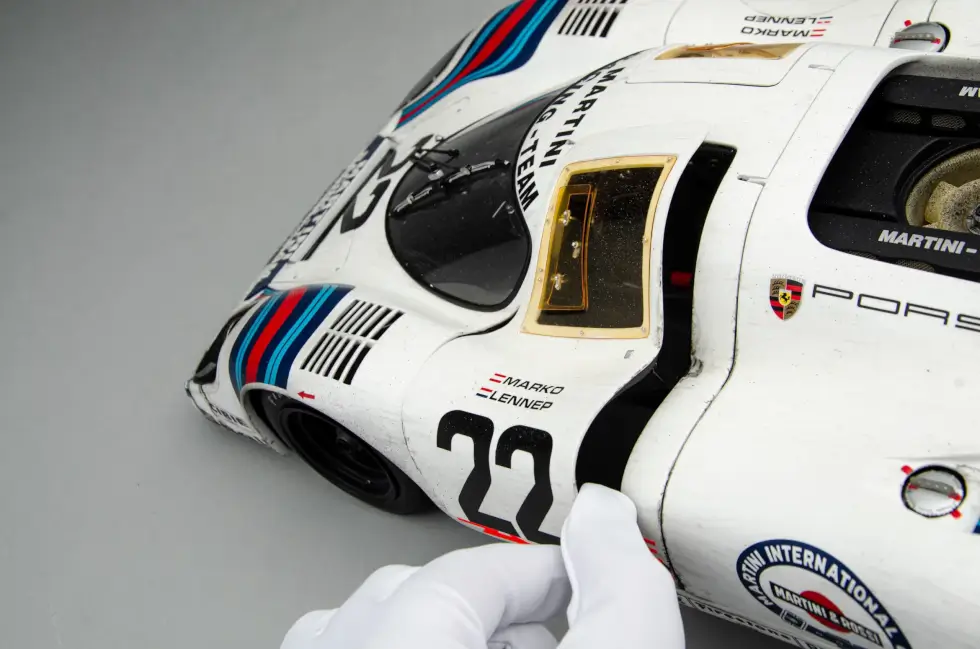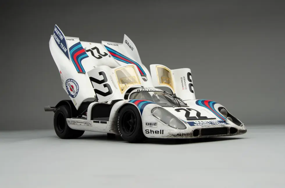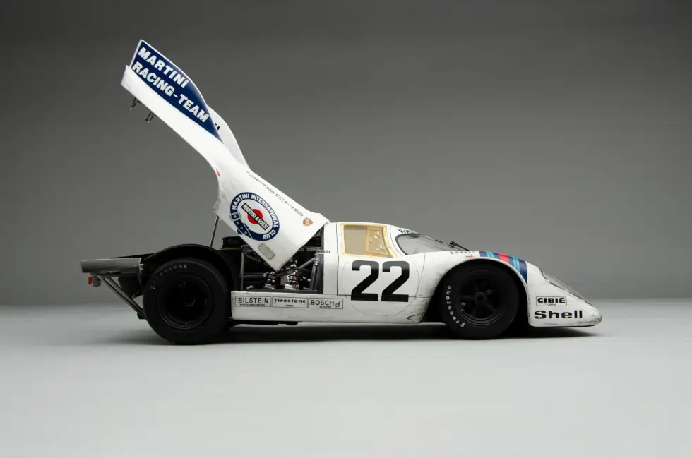 The sophisticated nuances that go into any of the scale models in the shop’s catalog are mind-blowing. For example, this remarkable replica of the 1971 Le Mans winner even shows weathering – an effect only a few can pull off perfectly. Machines like these accumulate dirt, wear, and more as the endurance race progresses.