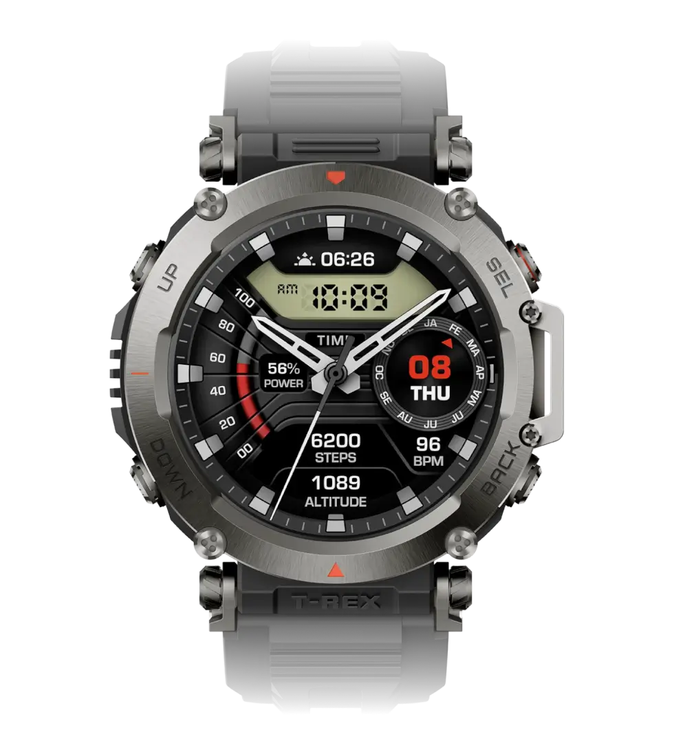 However, hardcore explorers can switch to Endurance GPS Mode for a mind-blowing 80 hours on a single charge. The T-Rex Ultra’s robust construction uses a polymer alloy case band and 316L stainless steel for the bezel, case back, and buttons. It measures 47.3 mm x 47.3 mm x 13.45 mm and weighs 89 grams.