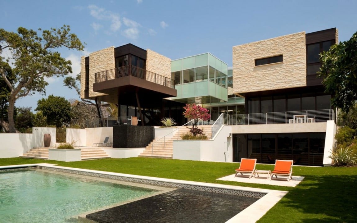 This stunning 12,300-square-foot residence was built in 2008 by Hughes Umbanhowar Architects. It is located in small waterfront town called Sewall’s Point, some 40 miles north of West Palm Beach.