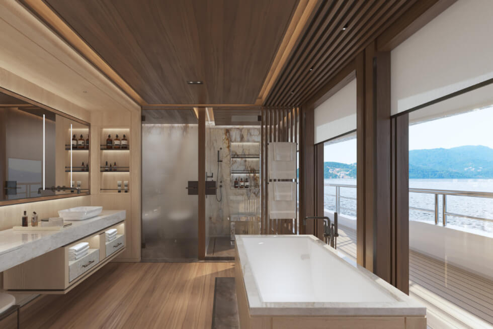 Size-wise, the shipbuilders are aware there are others out there that are at a colossal scale. Nevertheless, they’re confident that their ship will pack all the hallmarks potential buyers look for. The exterior of the Amels 80 features multiple areas for fun and relaxation.